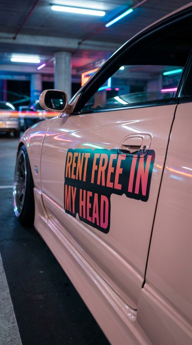 Tell the world you're rent-free in their heads with this vinyl sticker. Perfect for cars driven by people who live in your thoughts.